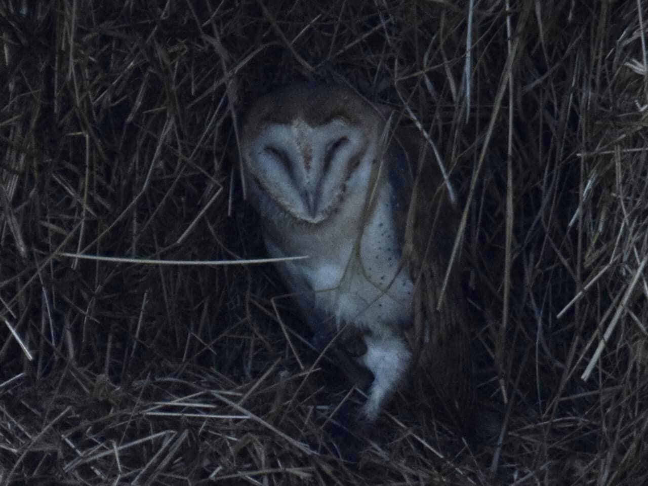 Over time the owlets became more streetwise, they stayed in the straw as they saw me approach both in the mornings and at feeding time. They still hissed incessantly for food and the fly pasts were incredible but I was reassured that they had found safe and cosy nooks in the straw stack itself. Yet on a farm there are always changes so you can imagine my consternation when one morning a lorry approached and the fork lift began to load straw onto it. The straw's true purpose isn't to house my barn owls but to provide bedding for animals and it is transported right across the country. I watched a distance away, looking for owlets flying out and worrying that some of them may even be loaded up onto the lorry between bales if they sat tight. But the forklift just took single bales from the outer edges and it seemed that the owlets were safe once more.